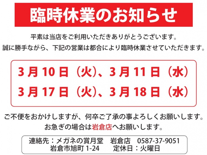 いつもメガネの賞月堂千秋店をご愛顧いただき誠にありがとうございます。