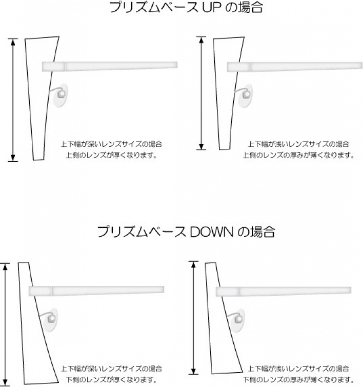 プリズム入りのレンズは片方が薄く、片方が厚くなります。