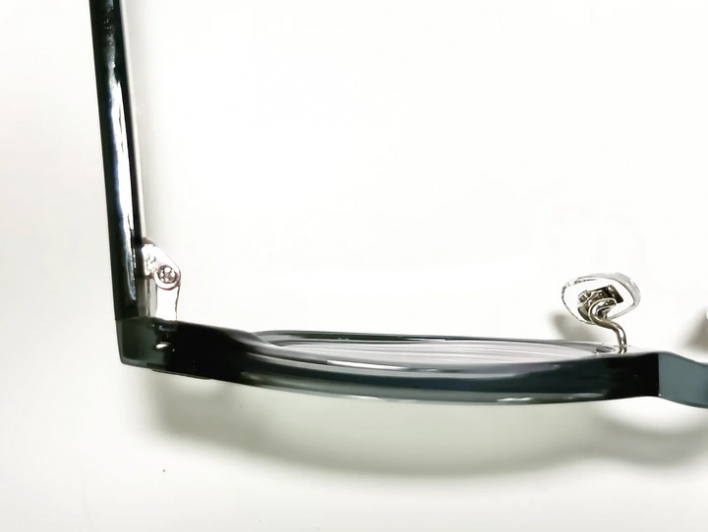 強度近視、強度プリズムの為、耳側のレンズの厚みが厚くなっています。