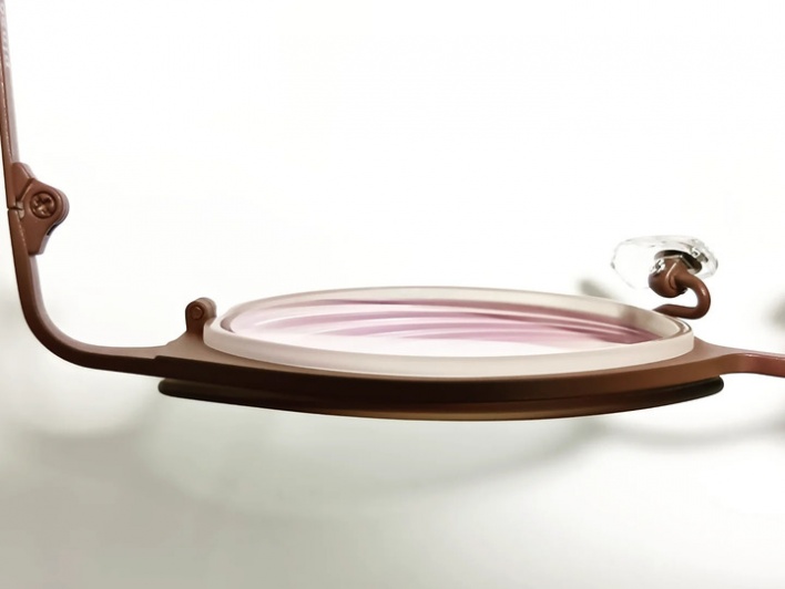 以前はフレネル膜を使用していた為、見え具合はすっきり、小型フレームにする事により、かなりレンズの厚みを薄く打仕上げる事が出来ました。