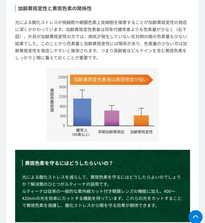 健康を奪う眼疾患には、実にさまざまな種類が存在しています。なかでも、加齢黄斑変性は、身近でありながら恐ろしい眼疾患のひとつ。眼の中にあって、ものを見るのに重要な部分「黄斑部」に存在する色素「ルテイン」が紫外線などにより損傷することによって、この疾患が引き起こされるという報告があります。