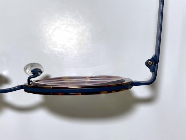 強度用近視なので、丁度小型のフレームだとレンズの厚みが気にならないぐらい薄くなっています。
