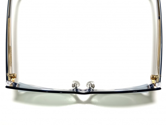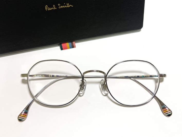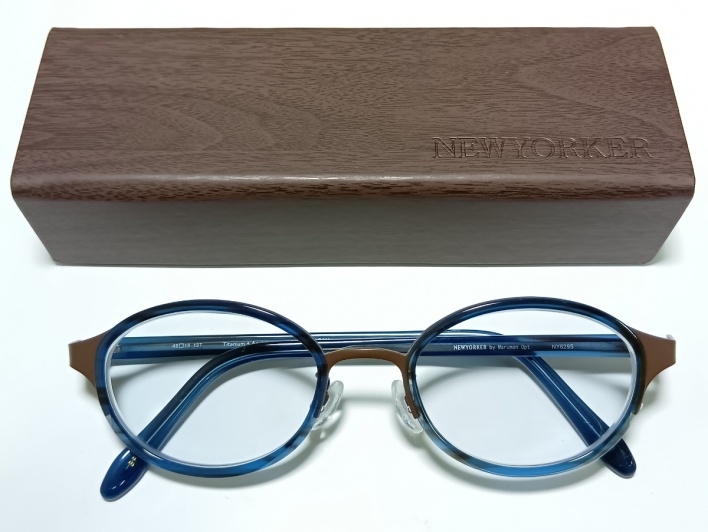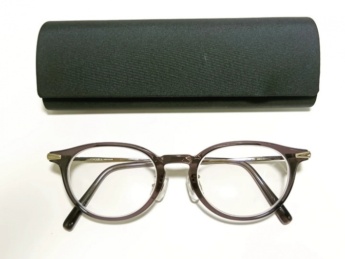 レンズ面積が大きいと耳側のレンズの厚みが厚く重くなてしまうので、小型のフレームを選択。