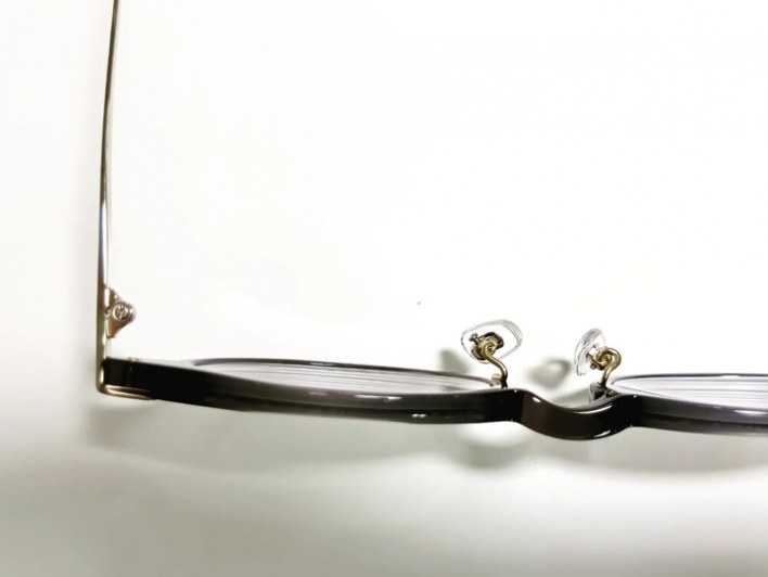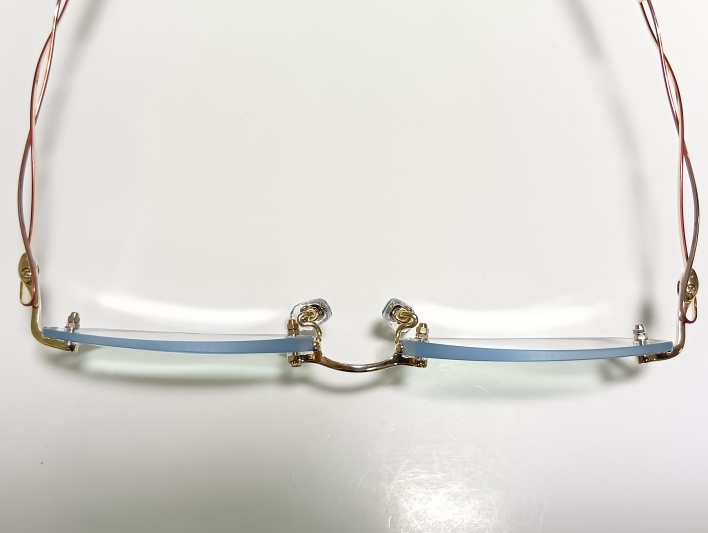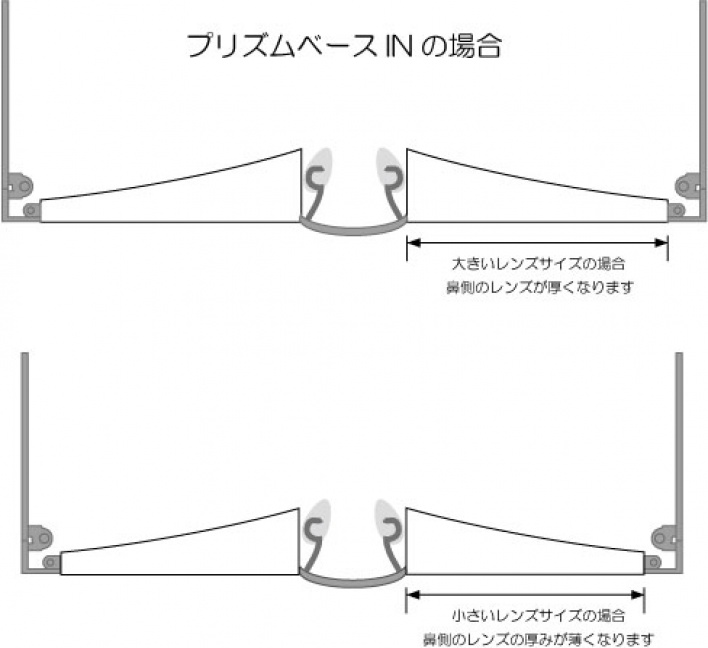 度なしプリズムの為、鼻側のレンズの厚みが厚くなっています。