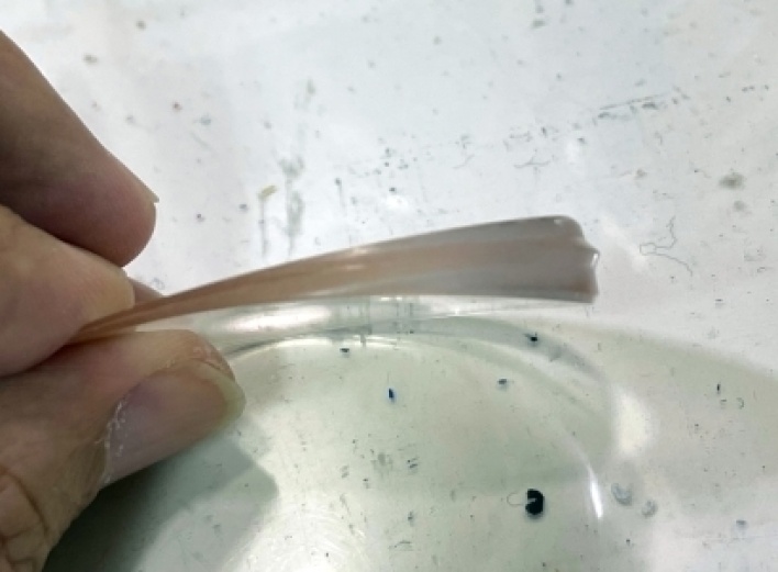 強度近視+プリズムの為、耳側のレンズの厚みが厚くなっています。